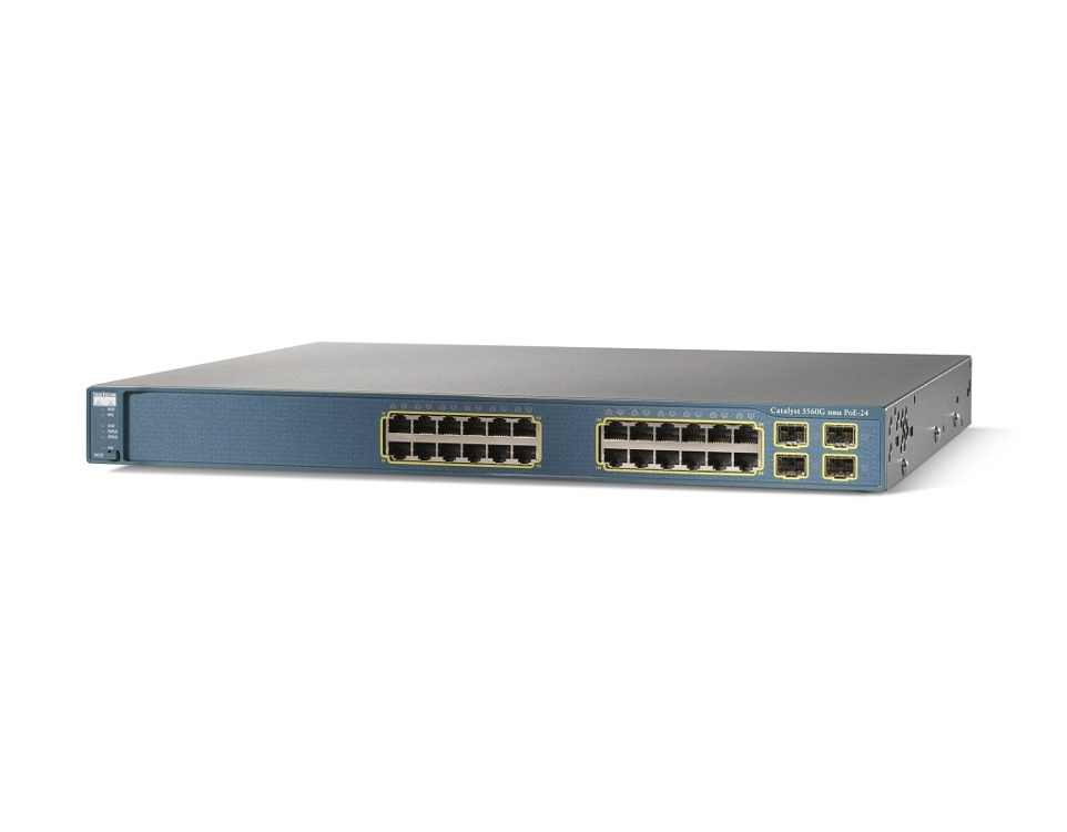 Switch Cisco Catalyst 3560, format rackable 1U, 24 ports Gigabit Ethernet PoE, et 4 ports pour module SFP, IP Services Image